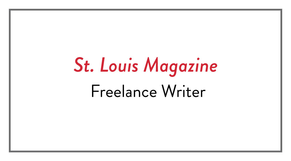 I currently work as a freelance writer for stlmag.com. I write about real estate each week for the publication and once in awhile I write about different topics related to homes, such as interior design and historic properties. You will first find various stories I have written for the publication, both as an intern and as a freelance writer. Underneath the section titled “On the Market” you will find my weekly real estate posts.